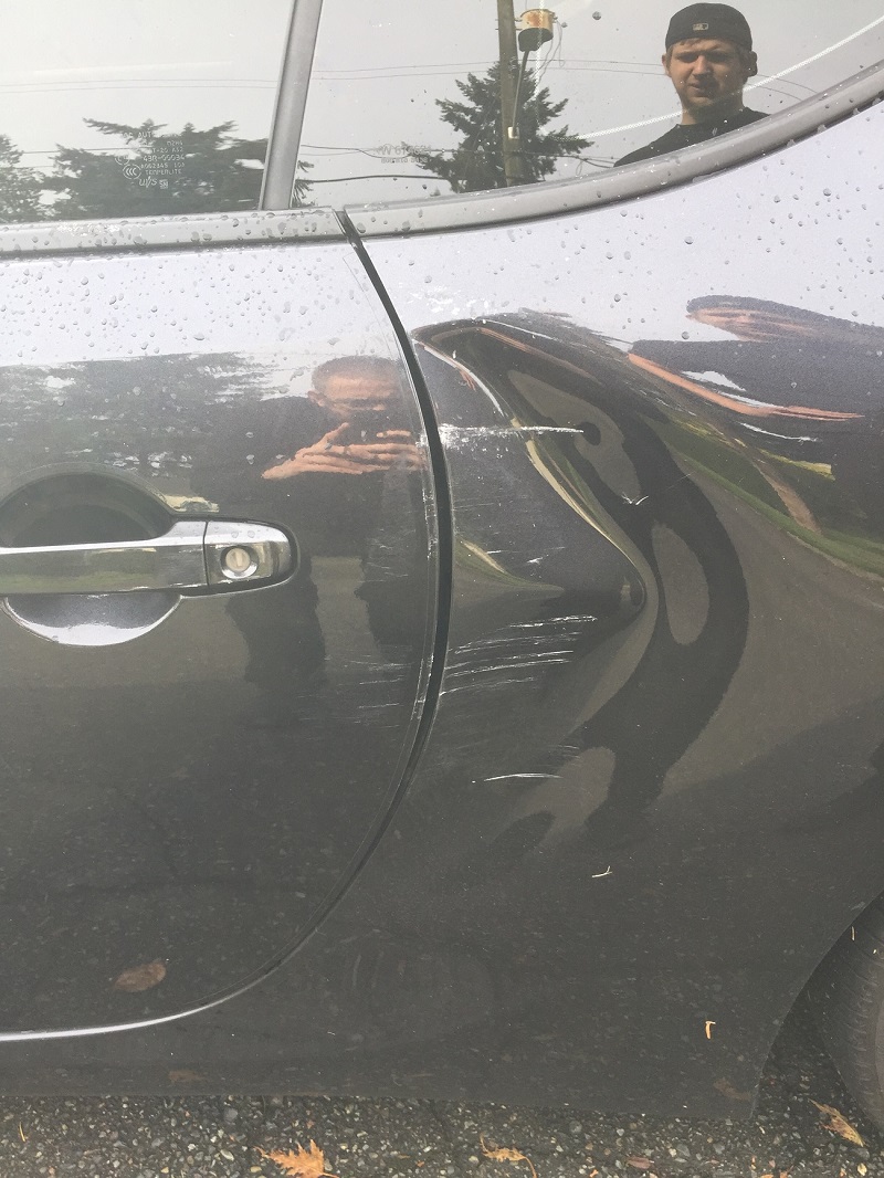Some dumb person decided to reverse in the wrong direction when leaving their angled parking spot and messed up the side of my car.....