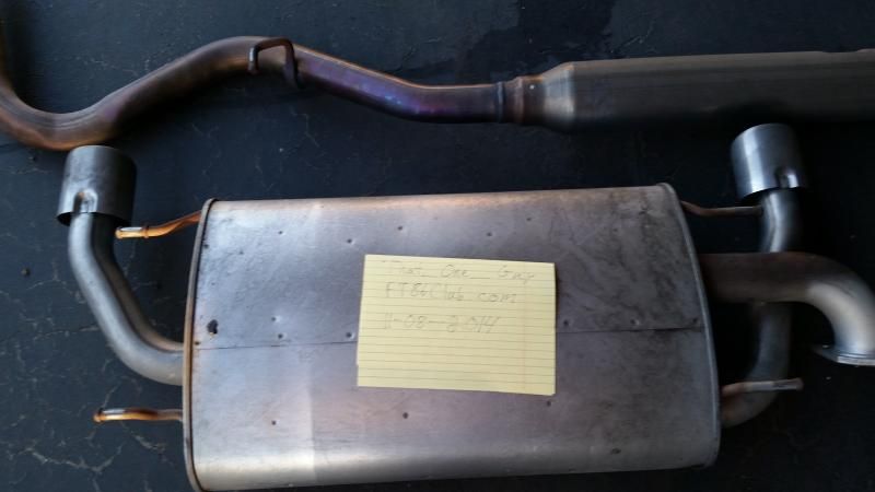 OEM cat-back with 26,xxx miles, no dents or scratches. I'm asking $90 obo, interesting trades welcome. Pick up only, I will not ship sorry: ![]() ![]() ![]() Also for sale is the driver's side 4" exhaust tip off of a Borla cat back exhaust. I only wanted a single exit exhaust so I capped the left side of the Y-pipe. I think this would be a good replacement if you've damaged your exhaust or are building a custom straight pipe. Asking $50 obo, interesting trades welcomed. ![]() ![]() Here is the right tip so you can see how it fills the exhaust bumper hole: