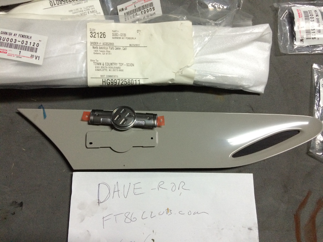 Read the next two lines. I will be traveling for business quite a bit in the next week or two but I do not know my schedule yet, therefore I may be slow to respond and if you buy anything I will give you an estimate on when I can ship it. I will not ask you to pay until I am back in town and can ship it. Standard disclaimer: Yes, my hand made sign sucks. All prices are OBO and no paypal fees will be charged. I will not ask you to gift payments. Prices do not include shipping, send me your zip code and I will get an estimate on the shipping charges or just offer a shipped price and I'll see if it works for me. Item: This includes both LH and RH fender garnishes and 2 USDM 86 badges. I bought these with the intention of painting them WRB and using them on my BRZ but never got around to it. Pics: Price: As best as I can tell these cost ~160 new for all 4 pieces, so I'm asking $100.