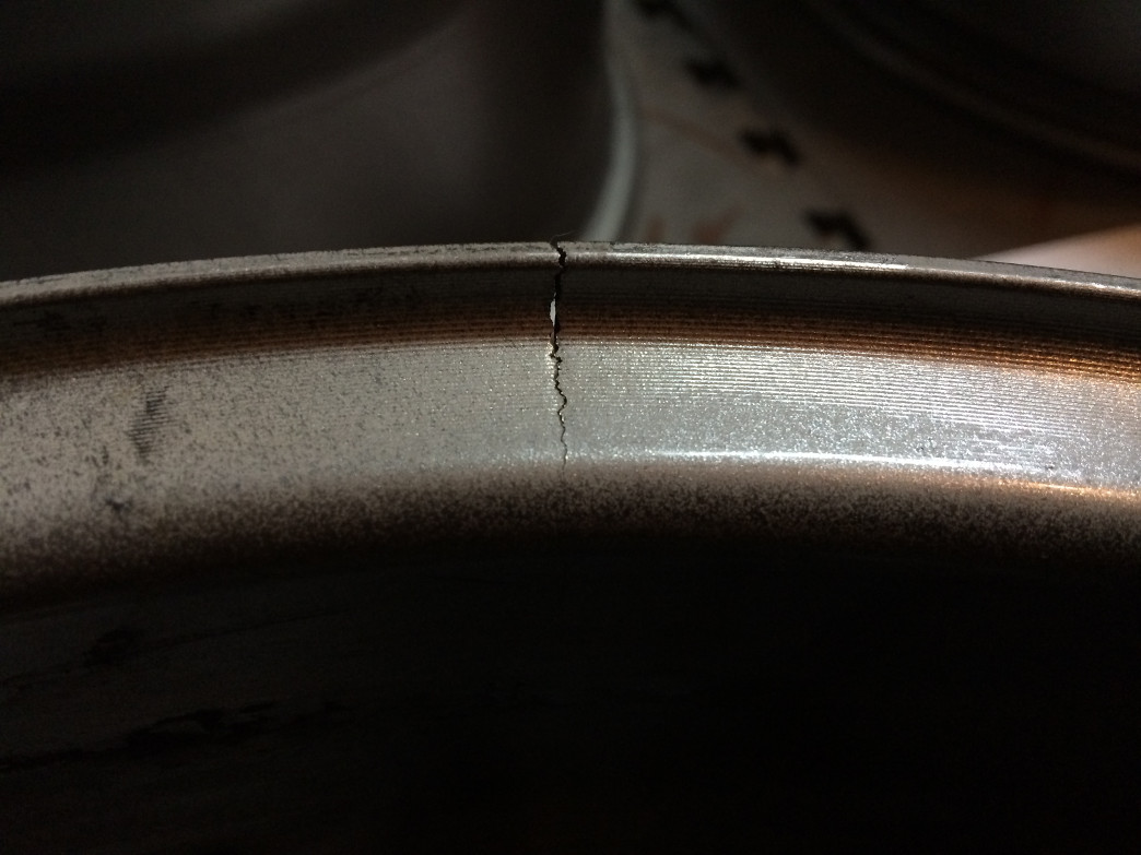 Most of the wheels I've damaged in the past has been due to potholes that I didn't see (filled with water in a rainstorm, etc) so I can't claim much of a penchant for destructive testing either Every other wheel I've had fail I've always been able to link to a specific incident, and always noticed it immediately as I check after any hard impacts (on or off the track). This wheel simply did NOT see any hard usage. Riding on track curbing, sure, but a wheel shouldn't fail from that. Jumping curbing, sliding over curbing, potholes, street curbs, bad joints on the interstate, etc.. none of that.