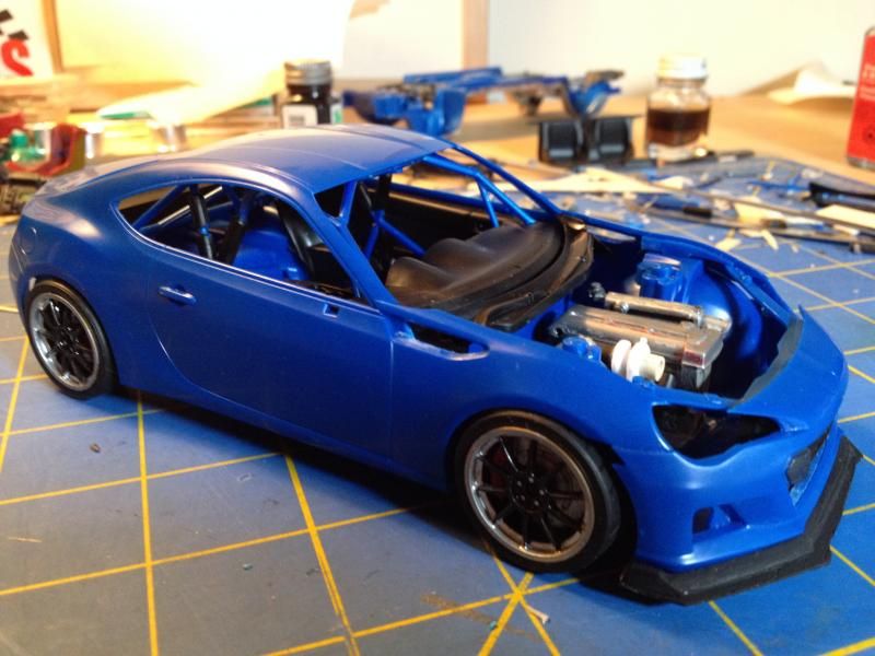Tamiya BRZ, how it's supposed to be... ![]() One weekend in and I've already made some leeway. I really don't make them according to the instructions... ![]() ![]() ![]() I had a bugeye STi rally car model from a while ago that I lost parts to, so it became the donor car for a lot of the go fast bits. BBK, wheels, v-mount intercooler/radiator, FIA-spec cage, and Recaros came from the STi. It was amazing how so many of the parts worked well together. Motor came from and old Supra model, but all the exhaust and intercooler plumbing will be custom made by melting the sticks that the parts come one (manifold and downpipe already done). Wish I would have gotten the STi concept model, but I'm going to make the rest of the STi lip kit with flat bottoms. I'm going to use SWP touchup paint to spray it to match my car (which will hopefully look like this someday) My car: ![]() This will be the fourth in my collection of "Cars with 6-pots that originally came with 4"