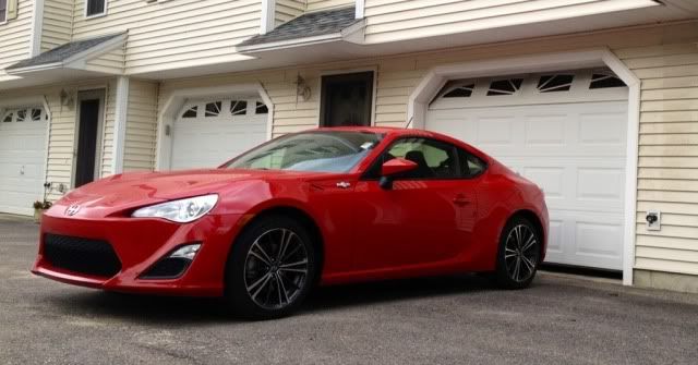 I have the distinct advantage of being able to take a car home when i want since I work as a sales & finance manager at a Toyota/Scion dealership. So last night I decided to take a Firestorm FR-S (MT) and I just couldn't resist. So much so that after I got home from my regular 30 minute commute, I took a shower and noticed that I had about 30 minutes before the Celtics games started so I looked out the window and saw it there kinda saying "hey, let's take a quick ride"... so I did. A few on and off ramps later (even while staying under 4k RPM's) I realized I wanted to own this car. One thing that has surprised everyone that knows me is the color choice, this is my list of new cars over the years *06 Scion tC *07 Camry SE V6 *07 Lexus IS250 awd *08 VW GTI (dsg) *09 WRX *10 370Z *12 Camry SE (don't ask) Every single one of those has been white. I never even considered another color. IDK why but on this car the white just doesn't get me excited but the red really did. Maybe it's because from what I can tell about 70% of buyers are buying white. Or maybe i'm getting old and want to look young ![]() Whatever the reason is, I love this Firestorm FR-S So, here it is: ![]()