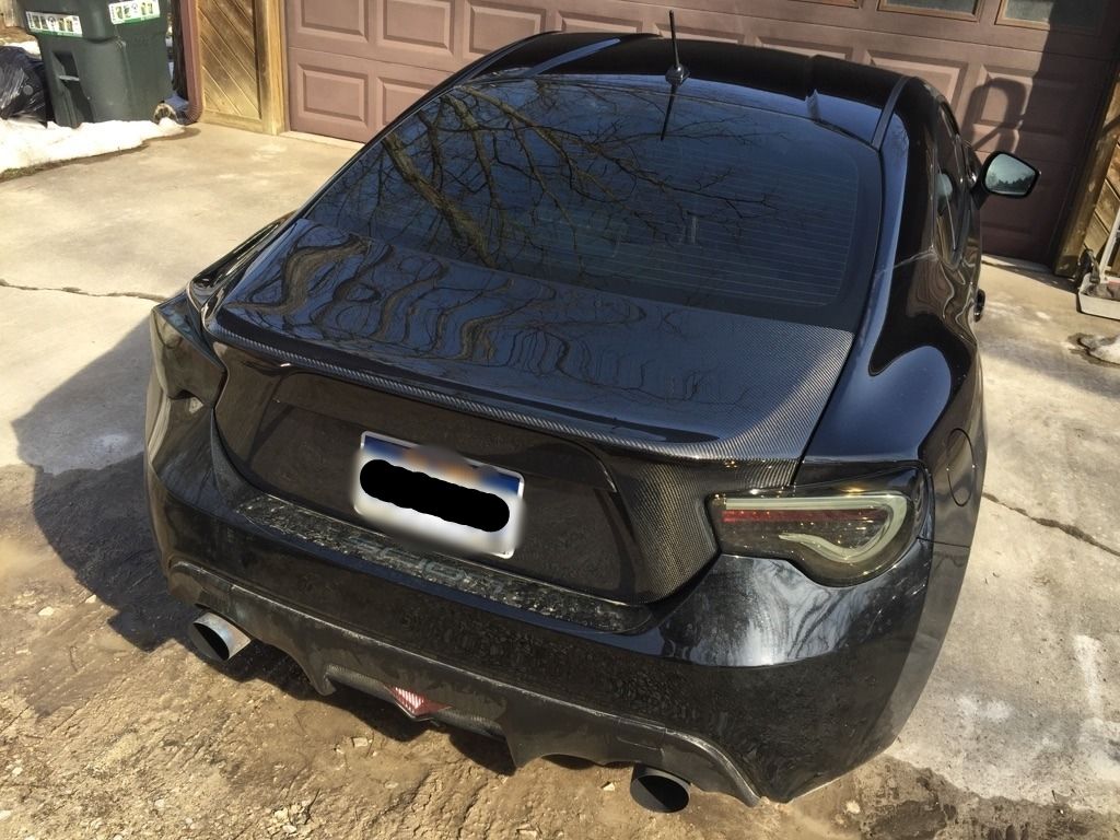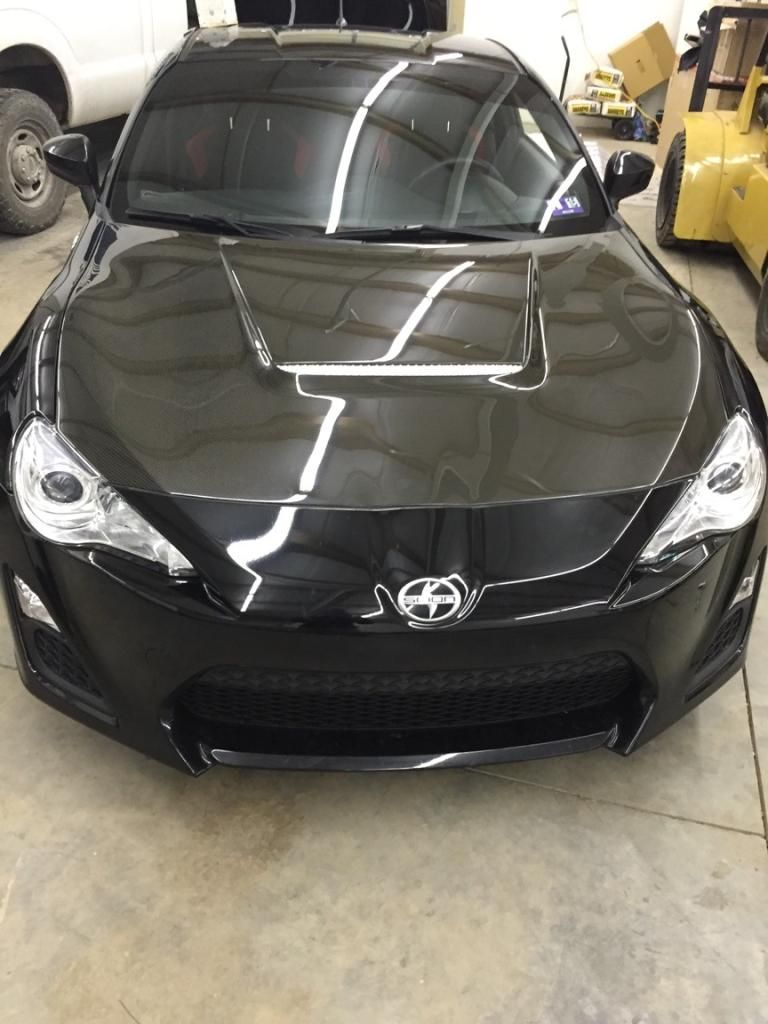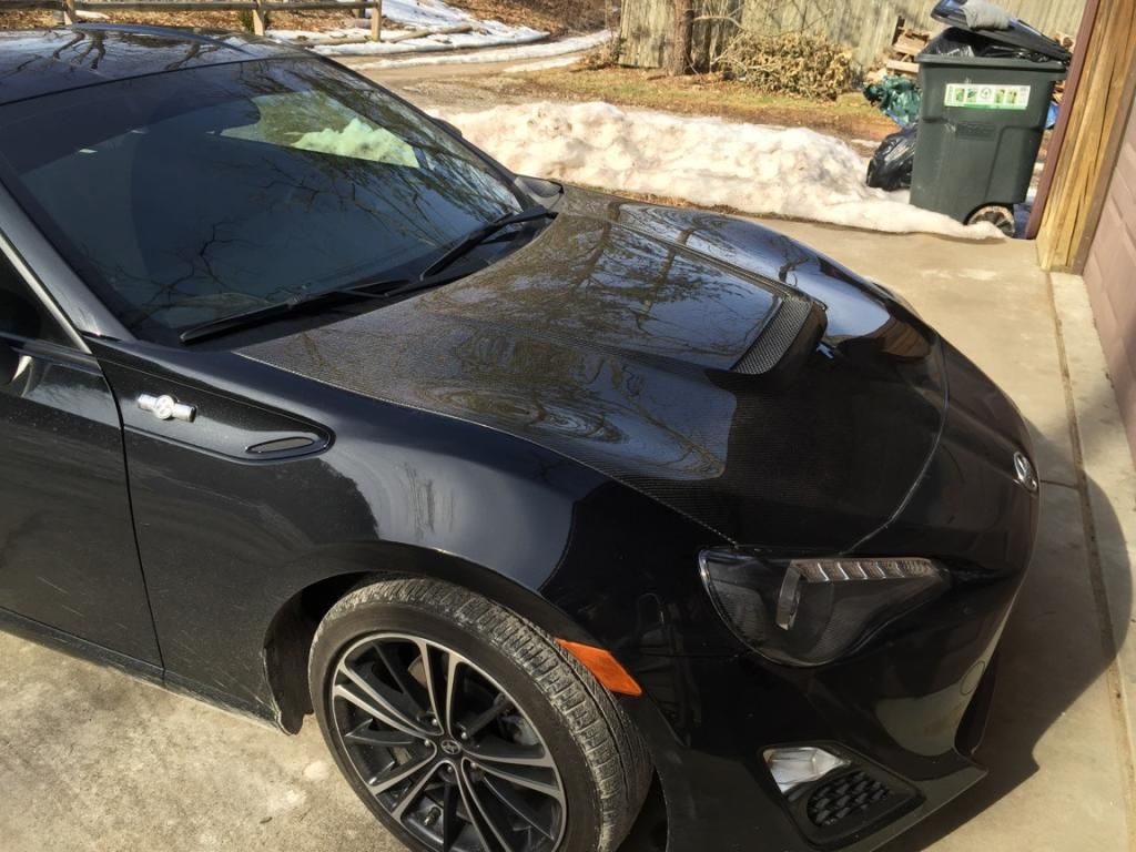 read that a few of you wanted some pictures of a black frs/brz with a carbon fibre hood, well thanks to hail damage I am here to satisfy your needs! I purchased the car brand new about 2 weeks ago, it came off the ship during a hail story and ended up getting damaged, which is good because it was way cheaper than what it should have been and therefore I opted for a CF hood rather than spendind almost 2k to get a new bonnet painted etc. I am pretty happy with the results, I was hoping for a really dark CF, it blends in really well. model: 2014 BRZ special edition (im from australia) has a few sti goodies, eg- rims, sti short shift, racing stripes- however they just came off before i took the photos, body kit, etc |
