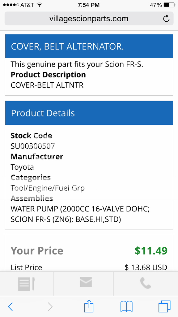 Looking for an OEM plastic cover for my water pump. Cut mine up for my Vortech install. It's $12 before shipping. Can anyone do $15 shipped?
