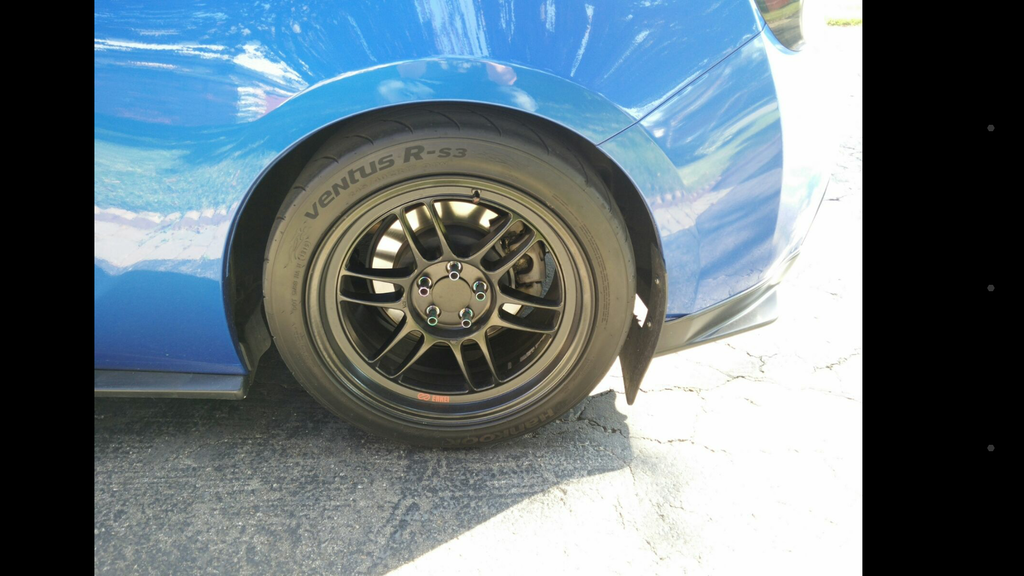 Its nearing 4 months and I've grown bored of my wheel and tire setup so it is time to move on. My RPF1 are Enkei Black with Red stickers. They are in good shape with no bends or cracks, just some rock chips (the worst wheel is second picture). The tires are the extreme performance go to, Hankook RS3 in 245 40 17 (will fit perfect on stock setup) with 5.5/32 in front and 7/32 in the rear. I'm in no rush to sell these so Im starting out the price at a reasonable $1550.
