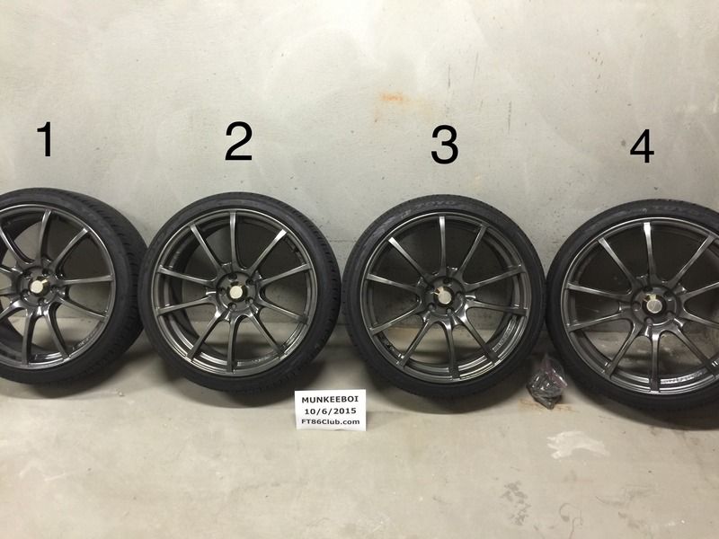 These are lightweight WedsSport SA-55m rim, 19"x8", 5x100, 50 offset. You will need new hub adapters/spacers to fit the BRZ/FRS. They have been professionally refinished in Hyper Black. They come with 225/35/19 Toyo Proxes 4 Plus tires, even wear with about 6000 miles on them. The tires are rated for 45,000k so there is still plenty of life on these tires as shown in my pics. I had these wheels on a 2012 Prius. They have a 5 x 100 bolt pattern and 73mm bore (specs- http://www.wedswheelsna.com/wp-conte...SA55M_2015.pdf) No Curb rash or bends and only 1 light chip on Wheel #3 (see pictures) from daily driving. Will also include WedsSport centercaps (4), WedsSport lightweight lugs (16) and matching WedsSport wheel locks (4). SOLD Asking $1300 OBO for the rims, center caps lugs, locks and tires picked up in Los Angeles. NO TPMS sensors included. Will ship at your cost. Prefer Cash in person and can accept paypal or chase quickpay for shipping Contact me with any questions or if you'd like more specific pictures. I am new here but am a seasoned user and have great feedback on priuschat.com and calguns.net under the same user name ![]() ![]() ![]() ![]() ![]() ![]() ![]() ![]()