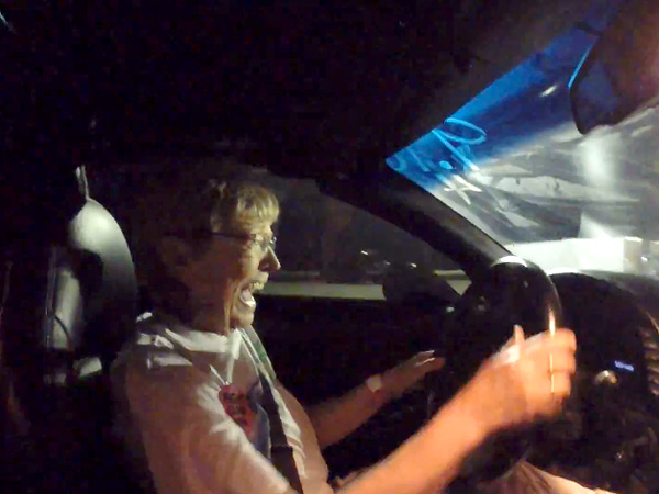 Hey, that's her! She had her arm hanging out the window and yelling "C'mon sonny, catch up". I think she may have her cat in the car as well.