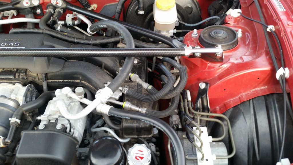 ![]() ![]() I've been looking at all the posts on various Strut Tower Braces and really likes the TRD bar but could not justify the price. I was mostly interested in the look and if it yielded any improvement in handling it would be a plus. I must say that there was no real noticeable improvement in handling but, I don't drive to push the limits anyway. It does seem like there is a bit less hesitation when taking a turn but could just be me. As for the look, the carbon fiber is spot on what I wanted. ![]() ![]() ![]() I've compared this with my buddies TRD Strut Tower Brace and except for the TRD tag on the bar I don't see any real difference. The D2BD Motorwerks carbon fiber strut brace is made out of a real carbon fiber tube, with billet end caps, black powder coated brackets, and zinc coated hardware. The best part is the price was only $99.00 from Dare 2B Different Motorwerks. - See more at: http://d2bdmotorwerks.com/i-15908730....H8aLd6JD.dpuf The craftsmanship looks to be great and installation was super simple. If you are looking for an alternative to the Carbon Fiber TRD Bar, give this one a look.